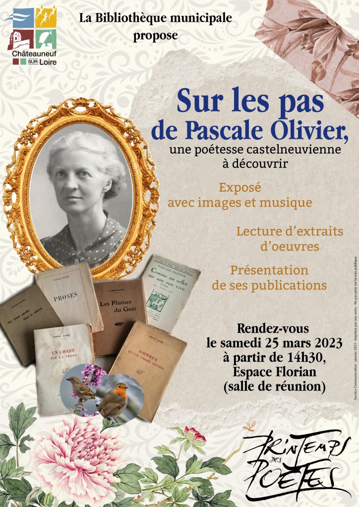 | Au Sommaire : Mars est le Printemps des poètes. Pour le célébrer, j’ai choisi de vous parler de deux poètes au sujet desquels des manifestations sont organisées dans le Loiret : 1 -Au centre Péguy, on peut visiter jusqu’au 29 avril l’exposition Naissance d’un écrivain : « Pierre », un manuscrit de Charles Péguy. Ce sera pour moi l’occasion de parler de ce grand poète orléanais et de lire quelques-uns de ses vers. 2 – À Châteauneuf-sur-Loire, la bibliothèque municipale propose le 25 mars à partir de 14 h 30 salle de réunion de l’espace Florian, une rencontre Sur les pas de Pascale Olivier, une poétesse castelneuvienne à découvrir. Vous y ferez connaissance une femme aux multiples talents qui vécut à Châteauneuf sans que personne n’y connaisse son importante œuvre littéraire. |