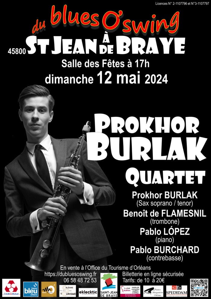 La dernière séance de la saison 9 avec PROKHOR BURLAK QUARTET au service d’un répertoire swing et de la mélodie pour finir en beauté! Prokhor BURLAK : saxophone ténor, Benoît de FLAMENIL, Pablo LOPEZ : piano et Pablo BURCHARD : contrebasse vous donnent RDV dimanche 12 mai 2024 à 17 H à la salle des fêtes de St-Jean-de-Braye – Un RDV à ne pas manquer 🤗🤗🤗