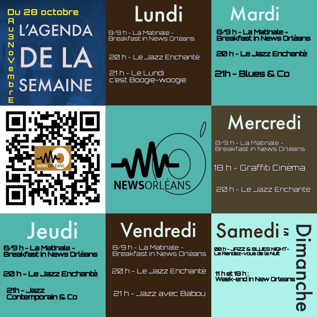 L’AGENDA DE LA SEMAINE By newsorleanswebradiocom | 27 octobre 2024 L’agenda de la semaine sur News Orléans Webradio.Pour écouter scanner le QR code ou l’application News Orléans 🤗🎶🤗 Partager : Partager sur Facebook(ouvre dans une nouvelle fenêtre) Facebook Partager sur X(ouvre dans une nouvelle fenêtre) X Share on LinkedIn(ouvre dans une nouvelle fenêtre) LinkedIn Share on Pinterest(ouvre dans une nouvelle fenêtre) Pinterest Partager sur Tumblr(ouvre dans une nouvelle fenêtre) Tumblr Partager sur WhatsApp(ouvre dans une nouvelle fenêtre) WhatsApp Email a link to a friend(ouvre dans une nouvelle fenêtre) E-mail J’aime chargement… Articles similaires