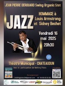 Salle comble pour l’hommage à Louis Armstrong et Sydney Bechet au Théâtre Municipal de Chateaudun vendredi 16 mai 2025 et un grand bravo à l’association Melting Potes 28 – Chateaudun d’avoir organisé ce concert.