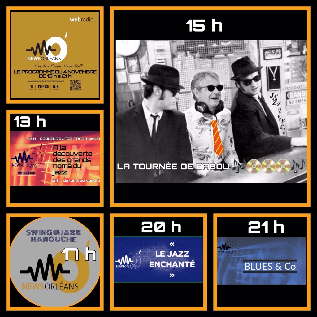 Diffusion : sur http://www.newsorleanswebradio.com – sur l’application News Orléans Webradio (Android ou IOS) et sur les plateformes : Online Radio Box – my Tuner – Welove.radio – Orange Radio – Radioline – Airable (Deezer) – Phonostar.