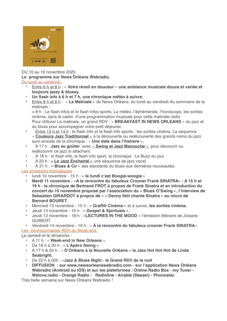 LE PROGRAMME DE LA SEMAINE