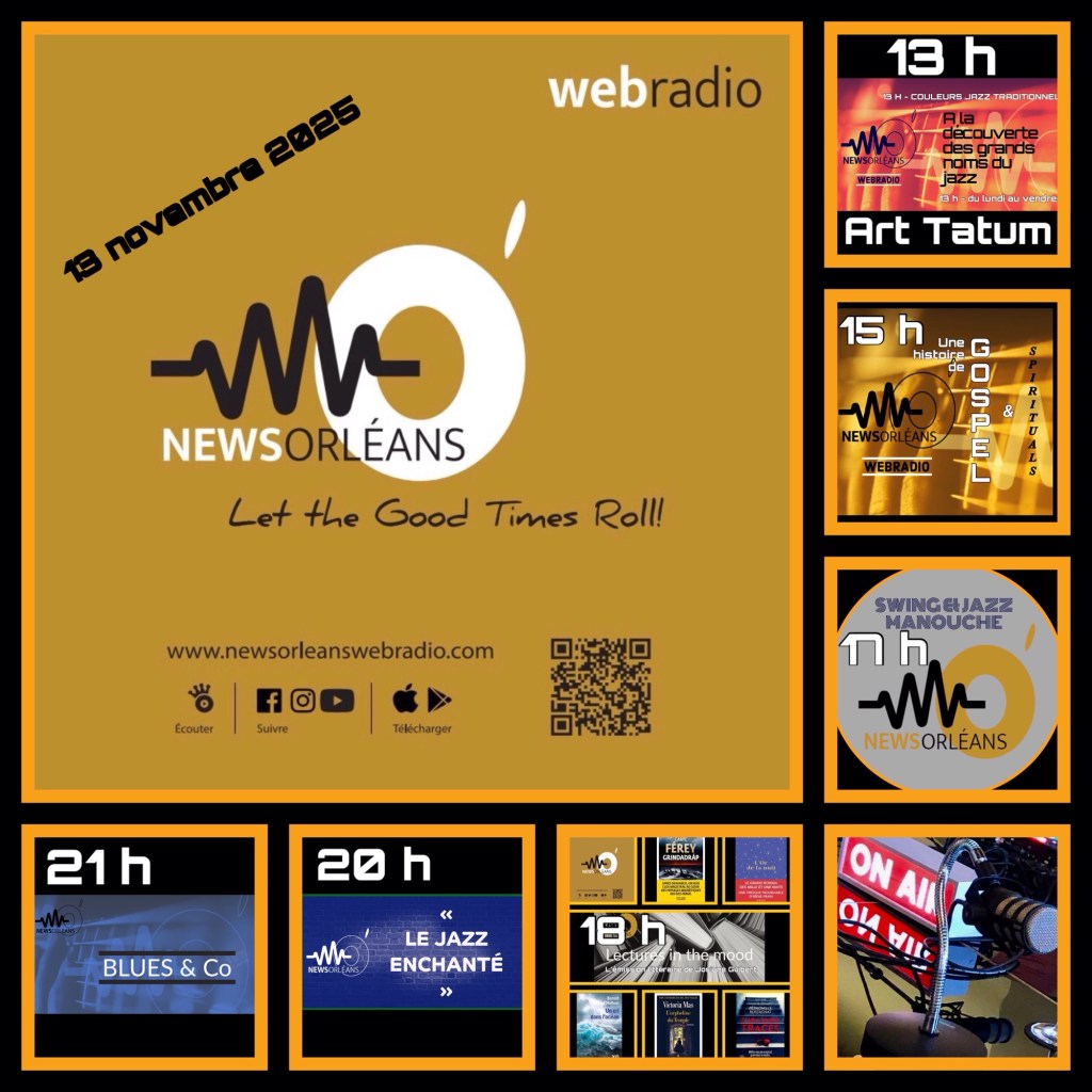 Diffusion : sur http://www.newsorleanswebradio.com – sur l’application News Orléans Webradio (Android ou IOS) et sur les plateformes : Online Radio Box – my Tuner – Welove.radio – Orange Radio –   Radioline – Airable (Deezer) – Phonostar.