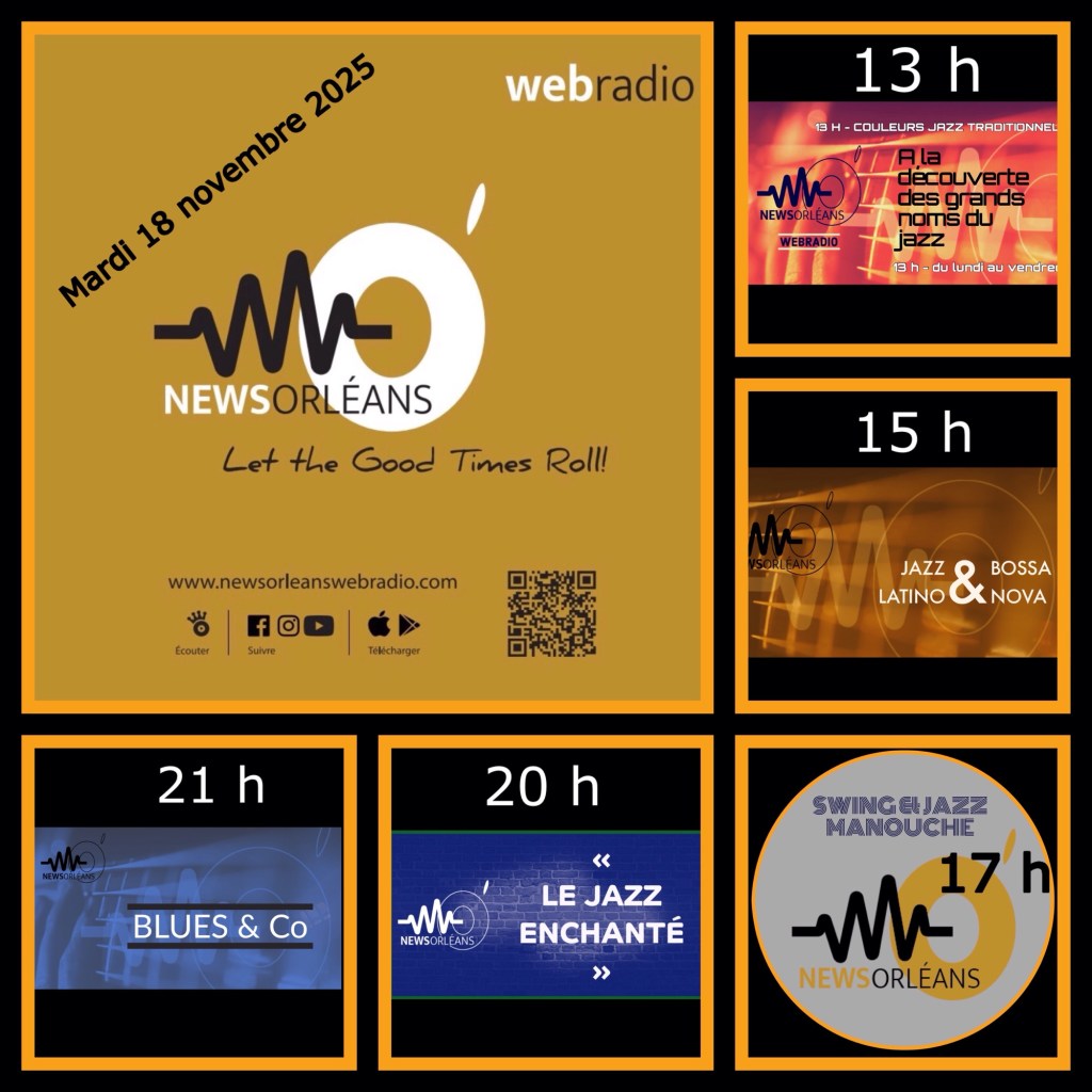 Diffusion : sur http://www.newsorleanswebradio.com – sur l’application News Orléans Webradio (Android ou IOS) et sur les plateformes : Online Radio Box – my Tuner – Welove.radio – Orange Radio – Radioline – Airable (Deezer) – Phonostar.