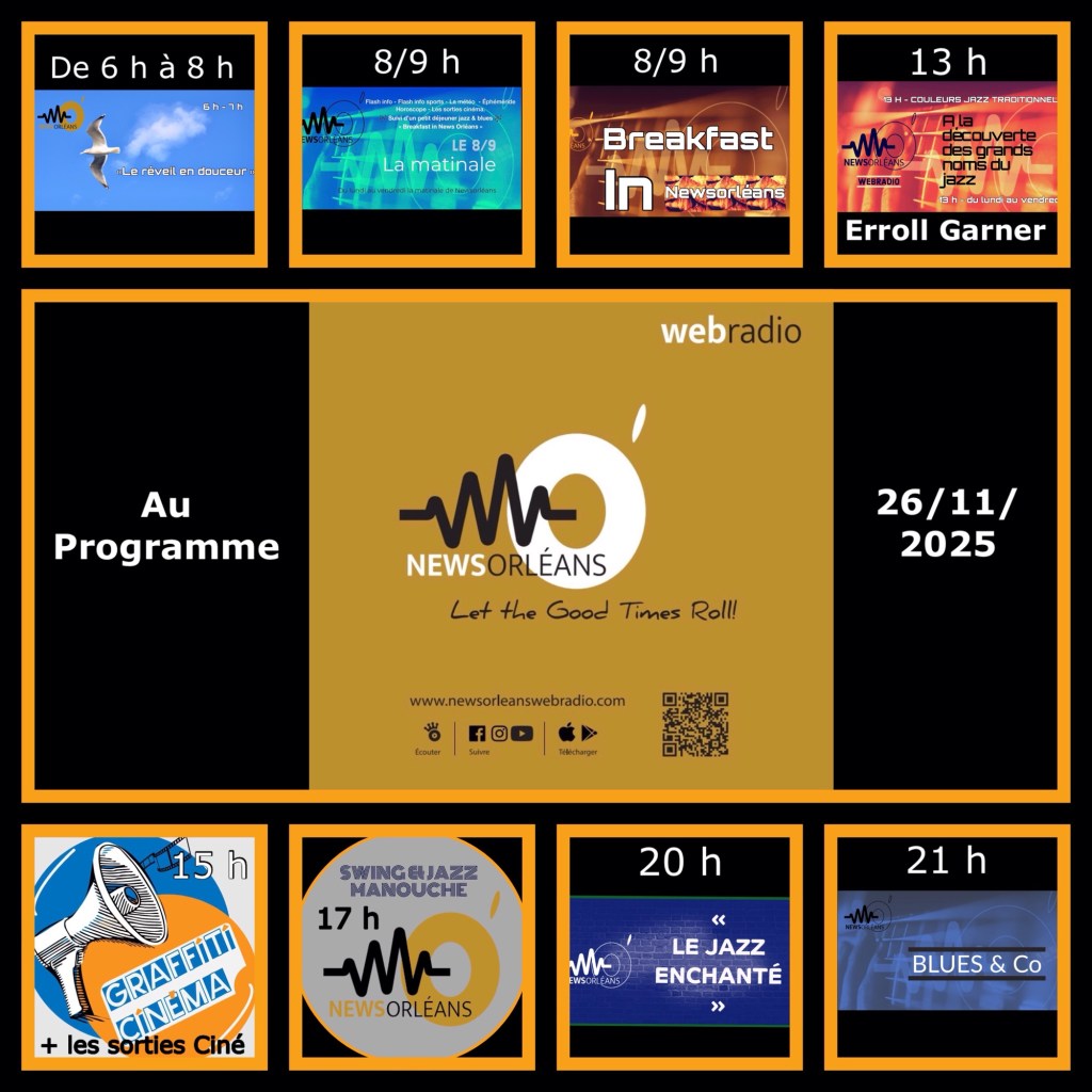 DIFFUSION : sur http://www.newsorleanswebradio.com – sur l’application News Orléans Webradio (Android ou IOS) et sur les plateformes : Online Radio Box – my Tuner – Welove.radio – Orange Radio – Radioline – Airable (Deezer) – Phonostar.