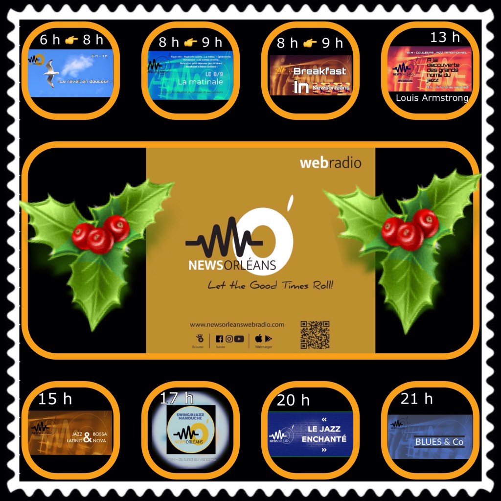 « DEMANDEZ LE PROGRAMME DU LUNDI 15 Décembre 2025 »Diffusion : sur http://www.newsorleanswebradio.com – sur l’application News d’Orléans Webradio (Android ou IOS) et sur les plateformes : Online Radio Box – my Tuner – Welove.radio – Orange Radio – Radioline – Airable (Deezer) – Phonostar.