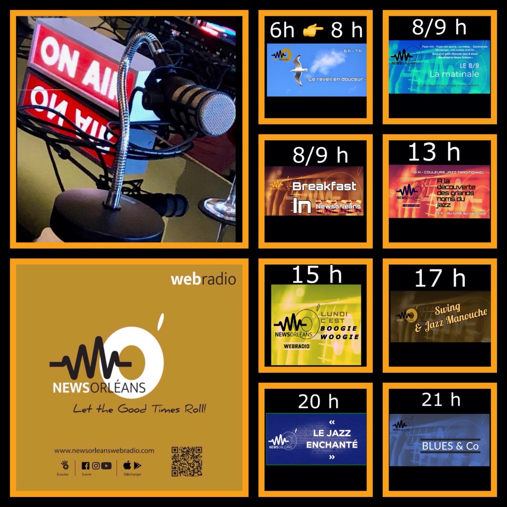 Diffusion : sur www.newsorleanswebradio.com – sur l’application News d’Orléans Webradio (Android ou IOS) et sur les plateformes : Online Radio Box – my Tuner – Welove.radio – Orange Radio – Radioline – Airable (Deezer) – Phonostar.