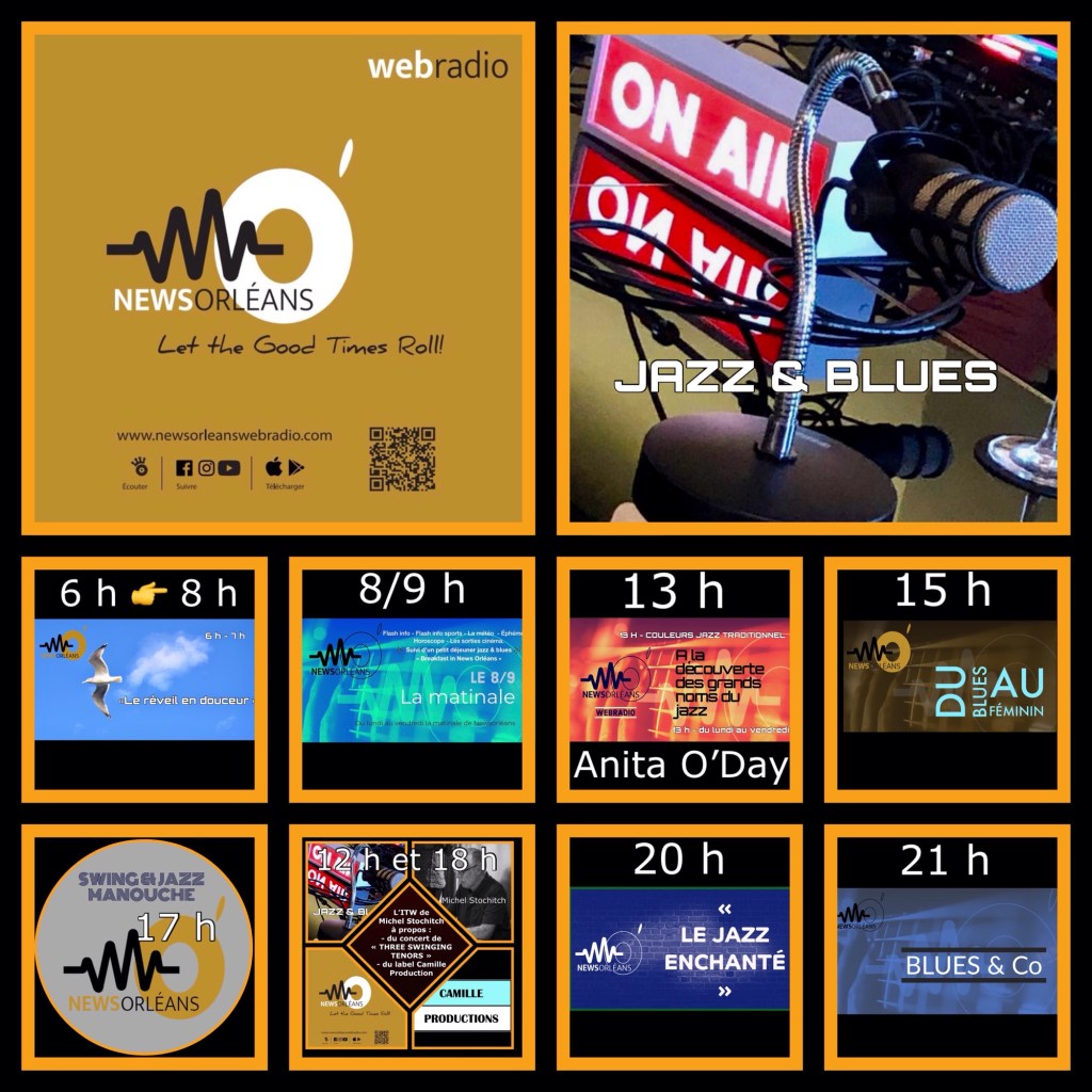 Diffusion : sur www.newsorleanswebradio.com – sur l’application News d’Orléans Webradio (Android ou IOS) et sur les plateformes : Online Radio Box – my Tuner – Welove.radio – Orange Radio – Radioline – Airable (Deezer) – Phonostar.