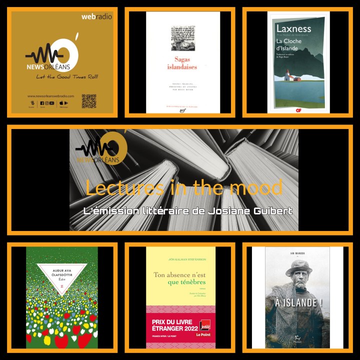 | Bonjour à toutes et à tous, Après cette interruption estivale, je suis très heureuse de vous retrouver pour une nouvelle saison au cours de laquelle j’aurai le plaisir de vous parler de mes lectures préférées. Au début de l’été, j’ai eu le bonheur de découvrir l’Islande au cours d’un circuit culturel. J’en suis revenue émerveillée et je me suis plongée dans la littérature islandaise. Aujourd’hui, je vais vous en donner un aperçu ; le mois prochain, je vous parlerai des polars islandais. Au sommaire de cette émission : 1 – Les sagas islandaises, recueillies et traduites par Régis Boyer et publiées aux éditions de la Pléiade. Ces sagas ont été écrites du Xe au XIVe siècle, chacune est un récit qui raconte la vie d’un personnage important à divers titres. 2 – La Cloche d’Islande aux éditions Flammarion, roman écrit dans l’esprit des sagas par Halldór Kiljan Laxness, auteur islandais qui a reçu le prix Nobel de littérature en 1955. 3 – Dans un genre différent, Éden de Auður Ava Ólafsdóttir aux éditions Zulma, un roman poétique qui parle de la nature et des arbres. 4 –Ton absence n’est que ténébres de Jón Kalman Stefánsson aux éditions Grasset, un livre déroutant et inclassable qui a reçu en France le prix du roman étranger en 2022. 5 – Et pour terminer, un roman qui n’a pas été écrit par un Islandais, mais qui fait référence à ces marins français partis de Paimpol de 1850 à 1914 pour aller pêcher la morue au large des côtes islandaises, À Islande de Ian Manook aux éditions Paulsen. |