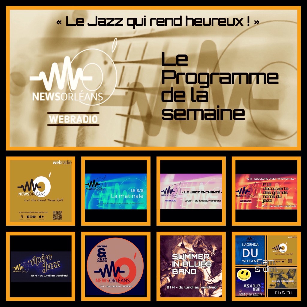 A 11 h et 17 h : « Week-end in New Orleans ». DIFFUSION : sur http://www.newsorleanswebradio.com – sur l’application News Orléans Webradio (Android ou IOS) et sur les plateformes : Online Radio Box – my Tuner – Welove.radio – Orange Radio – Radioline – Airable (Deezer) – Phonostar.