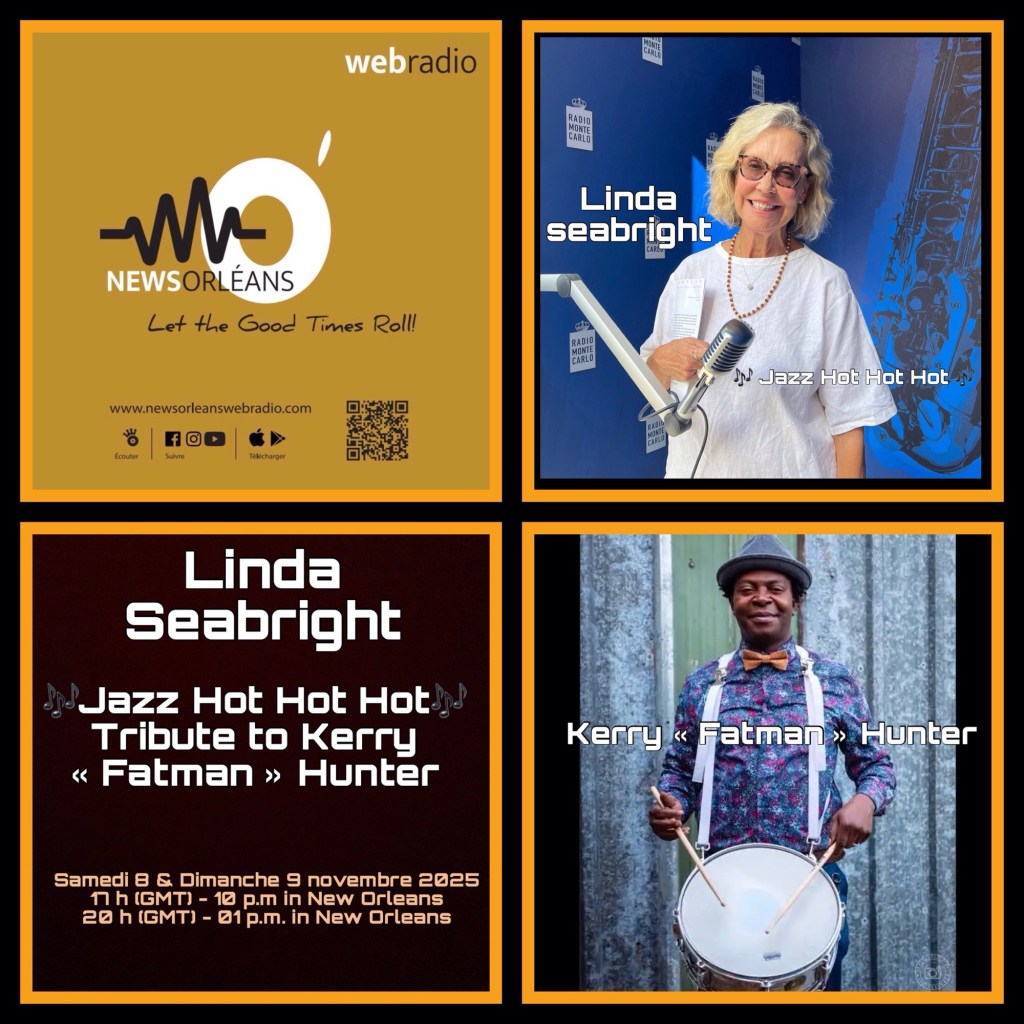 RDV avec Linda Seabright pour un nouveau 🎶Jazz Hot Hot Hot 🎶 Samedi 8 et dimanche 9 novembre 2025 à : 17 h (GMT) – 10 p.m in New Orleans et 20 h (GMT) – 01 p.m in New Orleans.