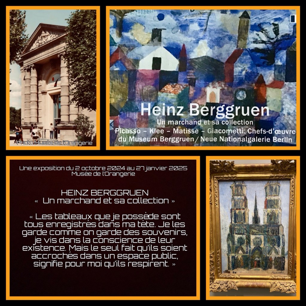 HEINZ BERGGRUEN « Un marchand et sa collection » que j’ai eu l’immense plaisir de découvrir au Musée de l’Orangerie (Paris). Des rencontres intenses avec Matisse, Picasso, Klee, Giacometti, Derain, Laurencin, Modigliani… et le bonheur d’admirer le tableau inachevé de Maurice Utrillo représentant la cathédrale d’Orléans (1913). Une exposition à ne pas manquer ! Une exposition du 2 octobre 2024 au 25 janvier 2025.