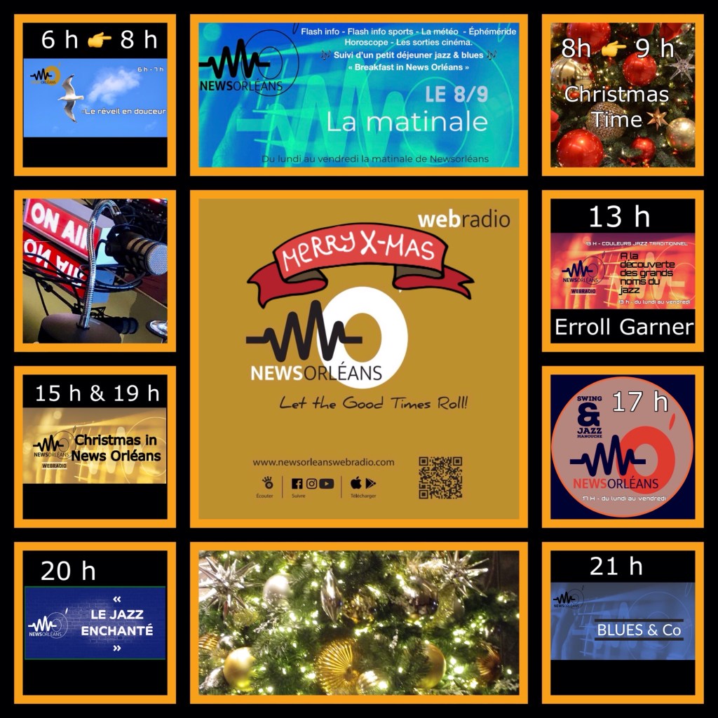 Diffusion : sur http://www.newsorleanswebradio.com – sur l’application News d’Orléans Webradio (Android ou IOS) et sur les plateformes : Online Radio Box – my Tuner – Welove.radio – Orange Radio – Radioline – Airable (Deezer) – Phonostar.🎄🎄🎄